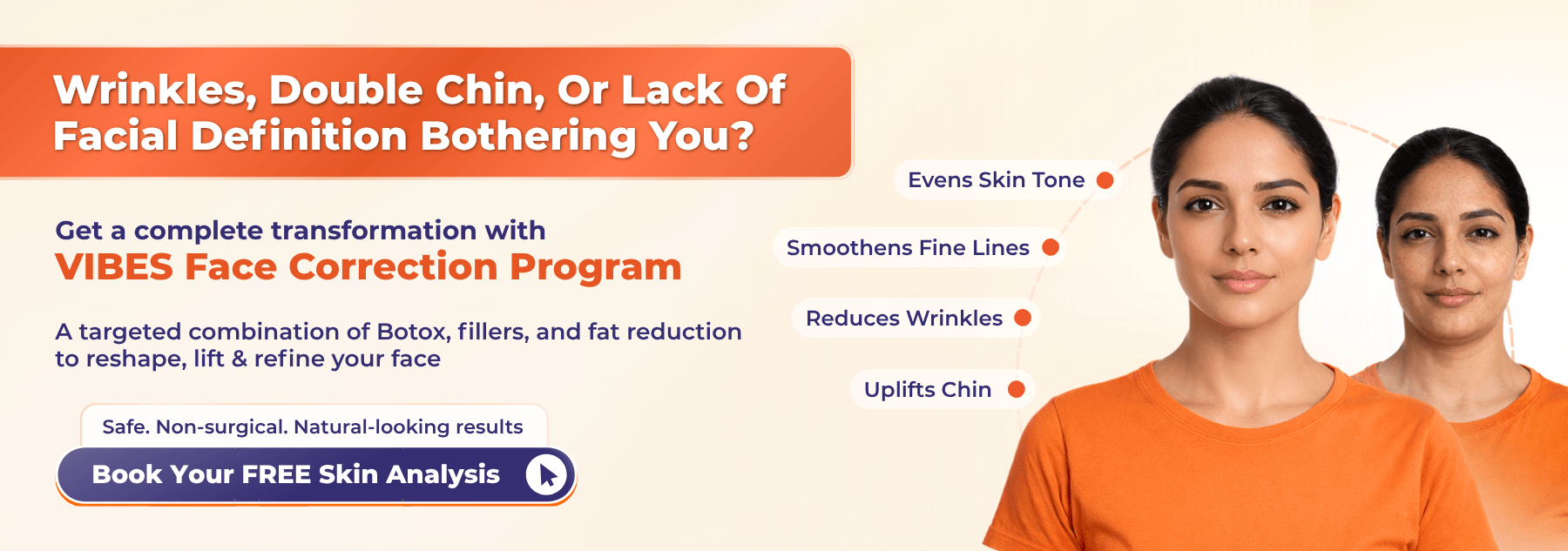 Ageing isn’t just about wrinkles-it’s about volume loss, softer contours, and a face that doesn’t look as fresh as it once did. If you’ve started noticing fine lines, hollow areas, or a loss of definition, surface-level skincare won’t be enough. Face Correction at VIBES combines Botox and Dermal Fillers to smooth wrinkles, restore volume, and refine your features-giving you a naturally refreshed, balanced look without surgery.